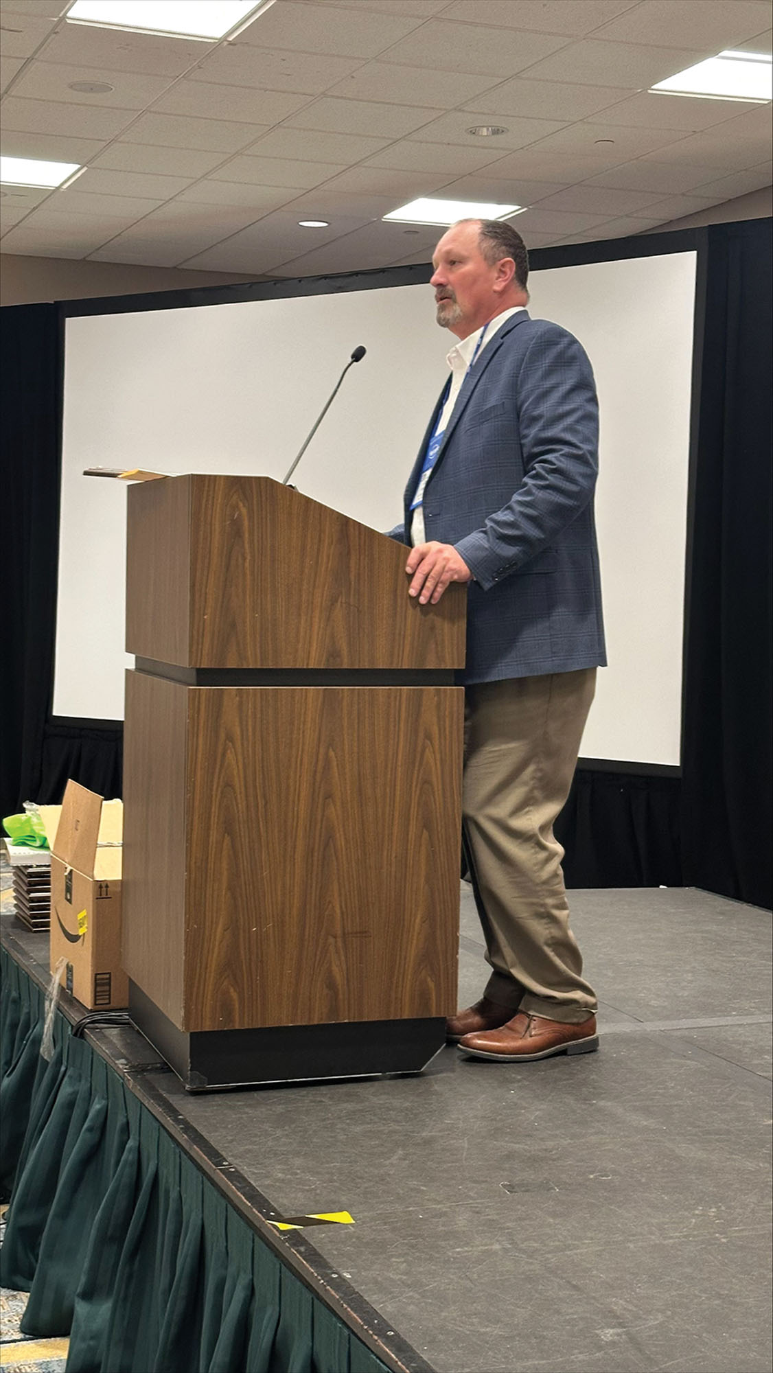 Jason Norsworthy addressing the audience after receiving an honor from the Rice Technical Working Group on Feb. 18, 2025.