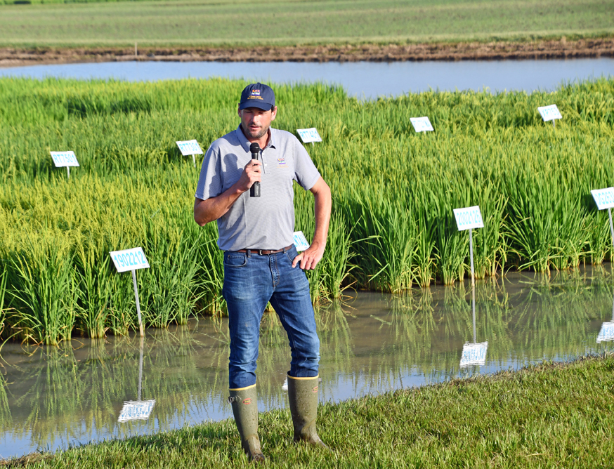 LSU AgCenter long-grain breeder Adam Famoso updated attendees on some of his advanced lines at the annual Rice Field Day — photos by Vicky Boyd