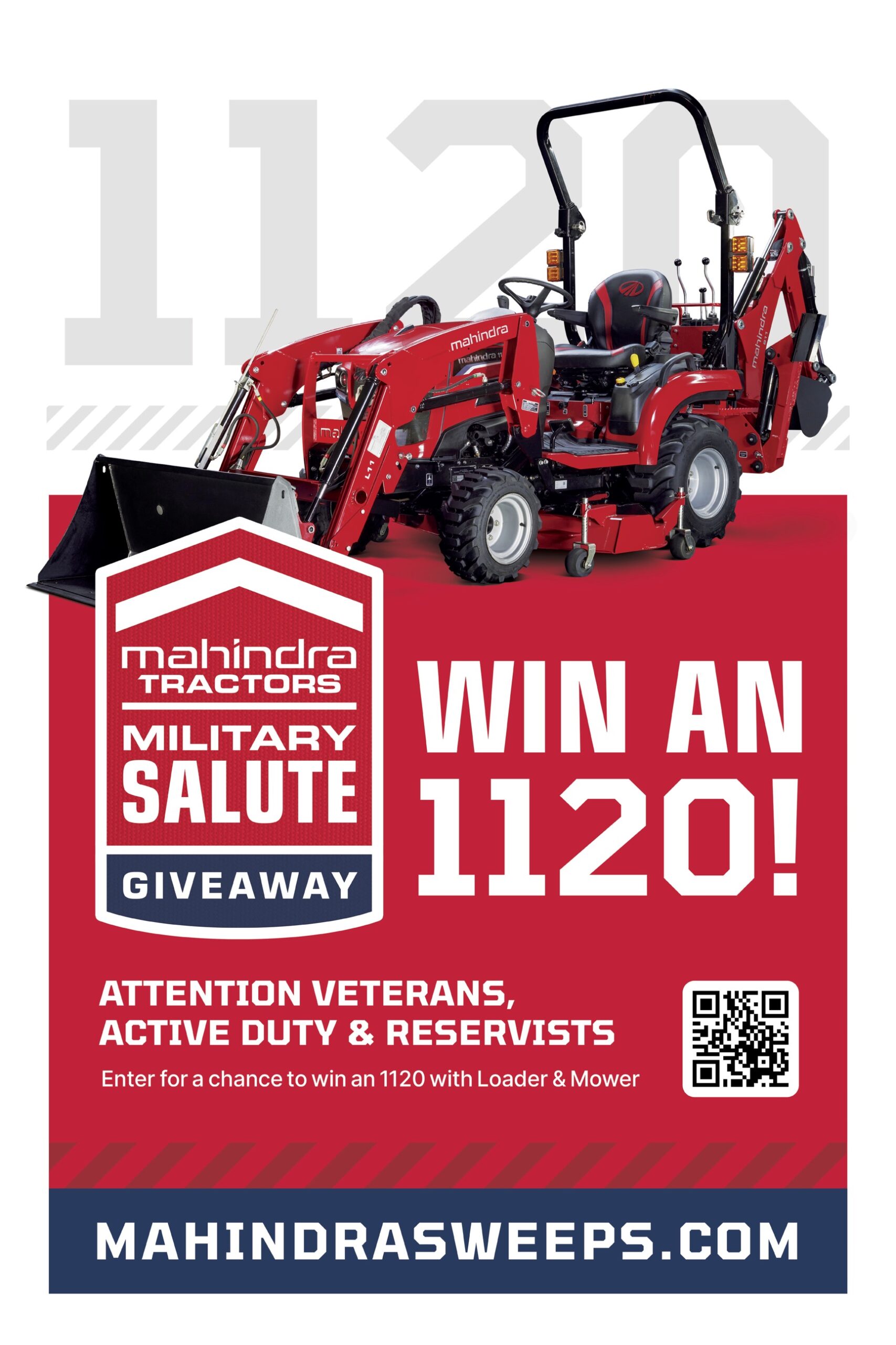 Mahindra Ag North America (MAgNA) announced the return of an exciting tradition: the annual Mahindra Military Salute Giveaway. This year’s giveaway features a Mahindra 1120 tractor with a loader and mower, designed to honor the dedication and service of our military personnel.