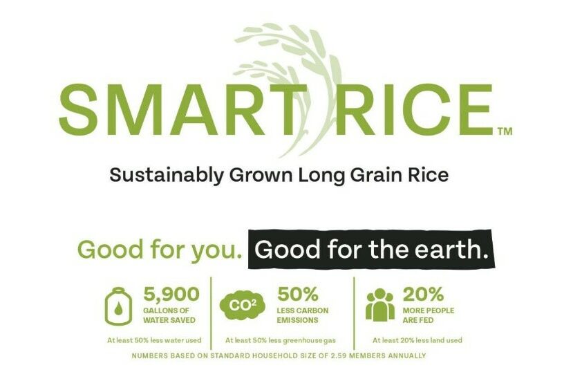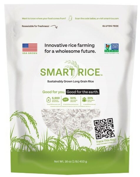 SmartRice® sustainability claims have been verified as accurate by SCS Global Services’ third-party verification process. SmartRice is a rice product grown in a more sustainable method to reduce the use of agricultural resources and provide more grain per harvest. Packaging on the product claims to use less water, produce less carbon emissions and feed more people.
