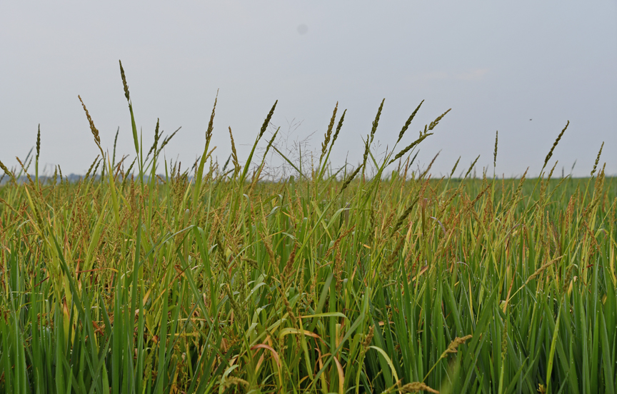 Barnyardgrass infests a weed research plot at the Rice Research and Extension Center near Stuttgart, Arkansas — photo by Vicky Boyd