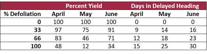 Our work over the past four years has shown that the later we plant the worse yield is impacted from defoliation (Table 1). Armyworms have the potential to do large amounts of defoliation in a short amount of time.