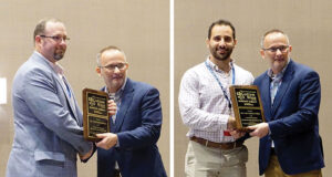 Trent Roberts and Caio Vieira, faculty members with the University of Arkansas System Division of Agriculture, were recognized for their conservation work in rice and soybeans at the National Conservation Systems conference.