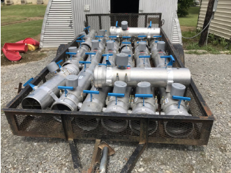 Portable flow meters installed on a contestant’s irrigation inlet measured water inflow. The meters were sealed after installation to prevent tampering — photos courtesy University of Arkansas