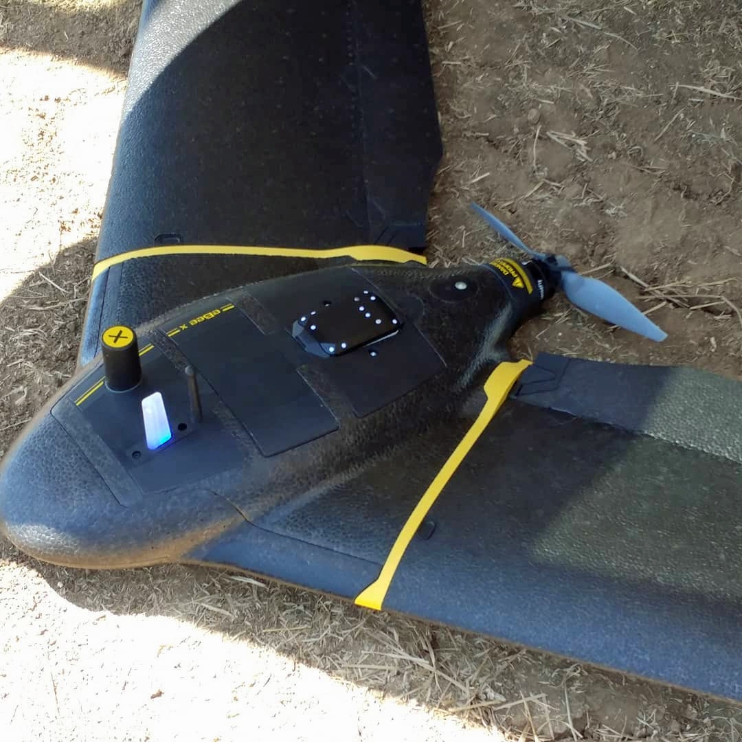 This fixed-wing drone was used to spot spray weedy rice in experimental plots — photo courtesy University of California