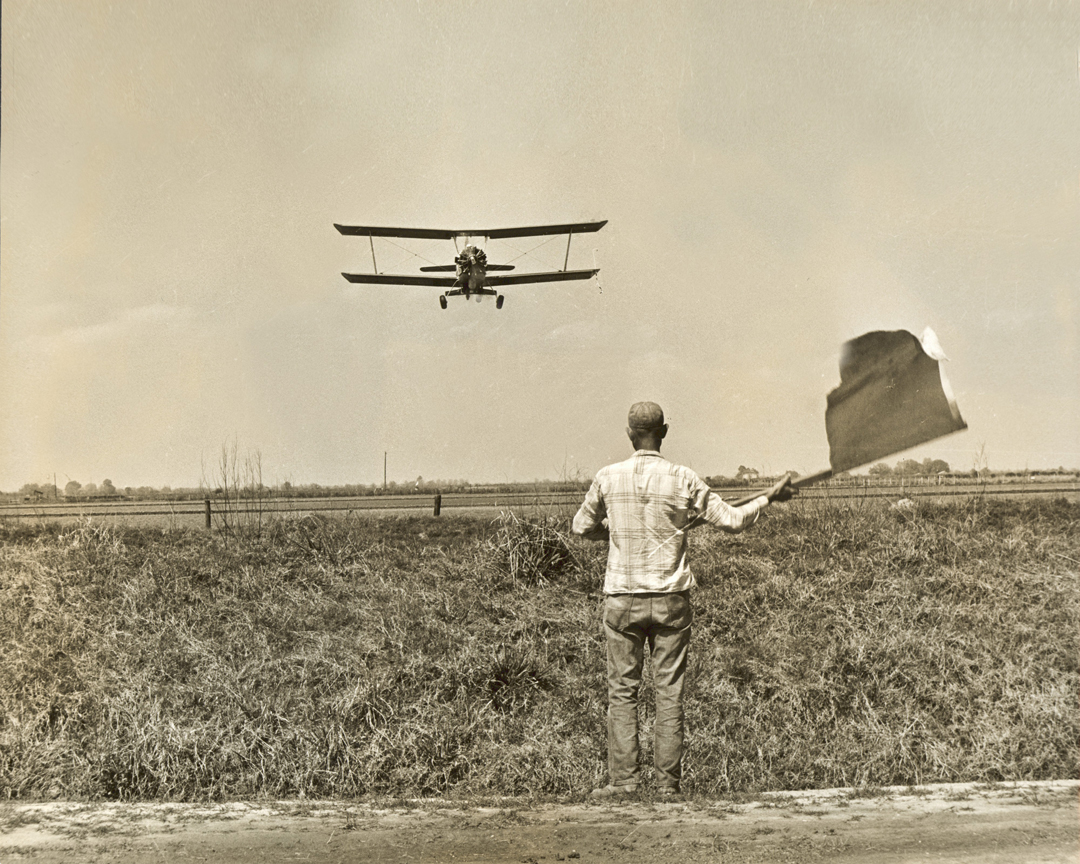 Gone are the days of flaggers, who used to help aerial applicators line up for field passes. They have been replaced by GPS, which is more accurate and safer—photo courtesy LSU AgCenter