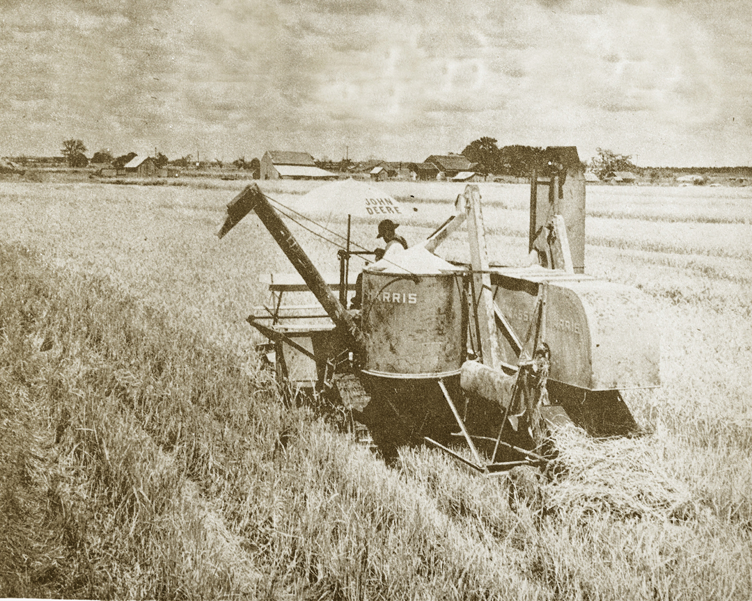 The Rice Farming article says McCown started harvesting his crop in August, averaging 10 acres a day. “With the help of his neighbors, he finished the job in about 45 days.”