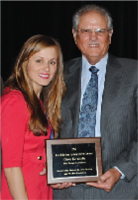 Meryl Farr congratulates her father Elton Kennedy of Mer Rouge, La., on his having received the 2013 Rice Lifetime Achievement Award. Elton is a longtime farmer, whose business has evolved to include rice handling and milling.