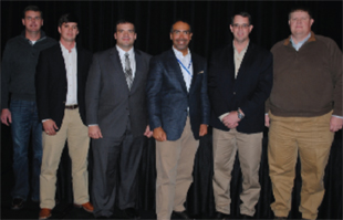 The new members of the 2014 Rice Leadership Development Program class are from left: Jeremy Jones, England Ark.; Will Reneau, Beaumont, Texas; Derek Haigwood, Newport, Ark.; A.J. Sabine of the Louisiana Farm Bureau, Baton Rouge, La.; Jon Munger, Yuba City, Calif.; and Clayton Schaefer, McCrory, Ark. Not pictured is Jonathon Hobbs of Russell Marine Group, Jefferson, La.