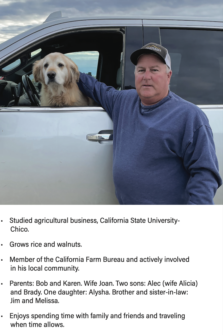I was raised in the small town of Robbins, California — an ag community of 100 people in the Sutter Basin area of the Sacramento Valley. I am a fourth-generation farmer, whose family has been a part of the rice industry since the early 1900s. Today, my parents, my wife, our children, along with my brother and his wife, are all actively involved in the operation. We’ve been a family farm for quite some time.