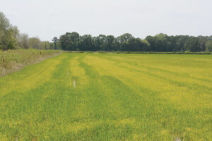 The first option here was to go with a spoon-fed approach like has commonly been used in furrow-irrigated rice. The second option was to drain the field and wait for the ground to get nearly dry and apply a N source treated with a N-stabilizing product. It is important to note the second approach provides the best yield response due to achieving greater nitrogen efficiency, but growers have to consider many factors and make the best decision for their operation.