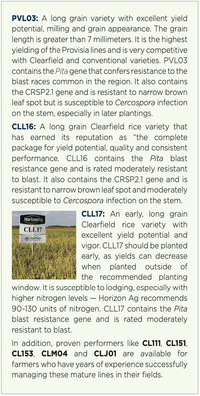 From two of the top three rice lines planted in Louisiana in 2022 to the growing popularity of elite Clearfieldâ and Provisiaâ varieties in the southern rice region, Horizon Ag varieties are the “go-to” seed for farmers looking for higher yield potential, desirable quality, preferred agronomics and overall consistent performance.